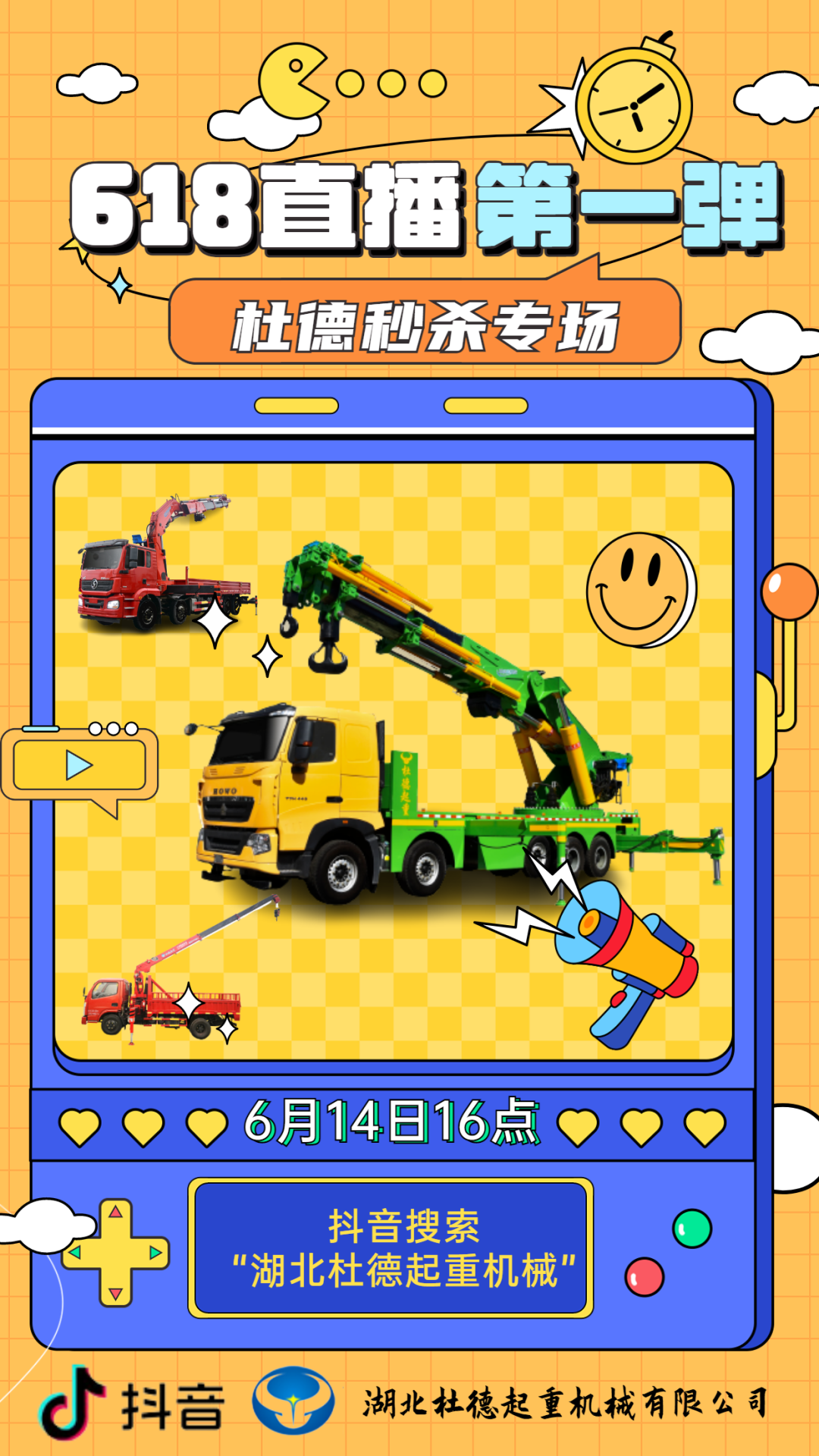 杜德起重抖音號直播預告!